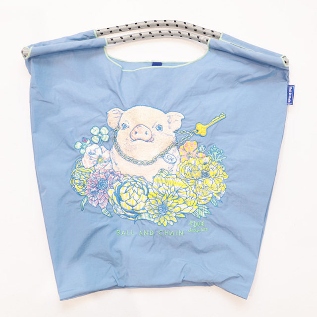耐久性、撥水性に優れた厚手のポリエステル素材に、グラフィックデザインをそのまま「刺繍」で施すことで、高級感とデザイン性を高めたトートバッグ。こちらのBLUELABELシリーズはメインバッグとして持てるように横長のシルエット。持ち手が紐状になっているので、ハンドルの長さを変えられ、手持ち、肩掛けのトートバッグスタイルはもちろん、両サイドを引けばショッピングバッグスタイルになり、一か所から紐を引っ張れば巾着のようになり、そのままショルダーバッグとしても使用できるマルチな仕様。また、丸く折りたたむと手のひらほどのコンパクトサイズになるため、持ち運びにも便利です。普段のお買い物はもちろん、エコなプレゼントとしてもおススメです。そして、様々なアーティストや、カルチャーを発信している人とのコラボレーションに取り組み、バッグの売上の一部は日本赤十字社の活動資金として寄付されています。