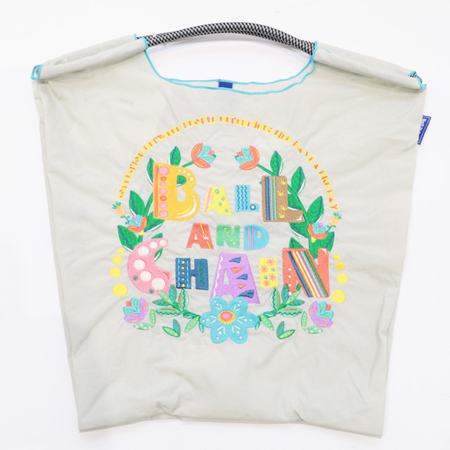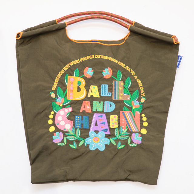 Ball&Chainのロゴをボタニカル風にアレンジした、ポップなフォントのデザイン。カラフルでコーディネートを華やかにしてくれます。