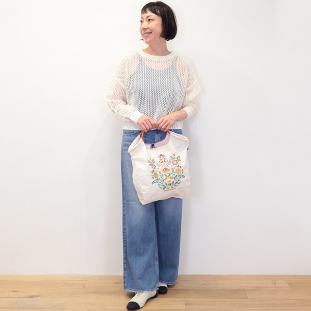 耐久性、撥水性に優れた厚手のポリエステル素材に、グラフィックデザインをそのまま「刺繍」で施すことで、高級感とデザイン性を高めたトートバッグ。こちらのBLUELABELシリーズはメインバッグとして持てるように横長のシルエット。持ち手が紐状になっているので、ハンドルの長さを変えられ、手持ち、肩掛けのトートバッグスタイルはもちろん、両サイドを引けばショッピングバッグスタイルになり、一か所から紐を引っ張れば巾着のようになり、そのままショルダーバッグとしても使用できるマルチな仕様。また、丸く折りたたむと手のひらほどのコンパクトサイズになるため、持ち運びにも便利です。普段のお買い物はもちろん、エコなプレゼントとしてもおススメです。そして、様々なアーティストや、カルチャーを発信している人とのコラボレーションに取り組み、バッグの売上の一部は日本赤十字社の活動資金として寄付されています。