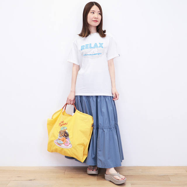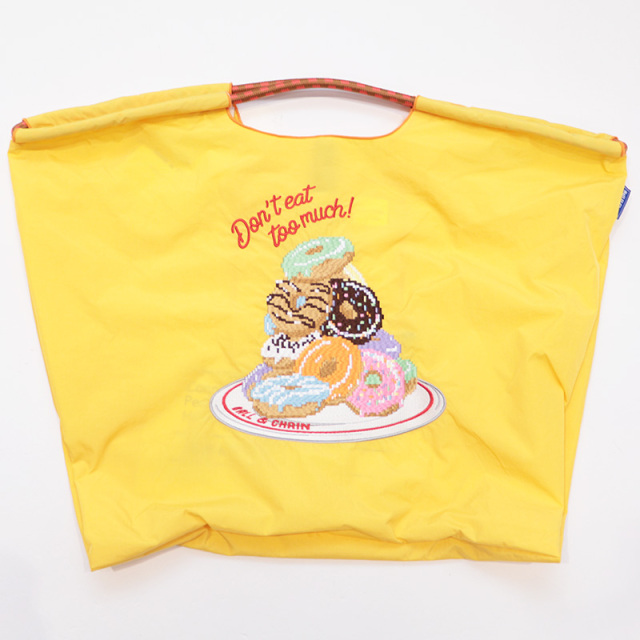 耐久性、撥水性に優れた厚手のポリエステル素材に、グラフィックデザインをそのまま「刺繍」で施すことで、高級感とデザイン性を高めたトートバッグ。こちらのBLUELABELシリーズはメインバッグとして持てるように横長のシルエット。持ち手が紐状になっているので、ハンドルの長さを変えられ、手持ち、肩掛けのトートバッグスタイルはもちろん、両サイドを引けばショッピングバッグスタイルになり、一か所から紐を引っ張れば巾着のようになり、そのままショルダーバッグとしても使用できるマルチな仕様。また、丸く折りたたむと手のひらほどのコンパクトサイズになるため、持ち運びにも便利です。普段のお買い物はもちろん、エコなプレゼントとしてもおススメです。そして、様々なアーティストや、カルチャーを発信している人とのコラボレーションに取り組み、バッグの売上の一部は日本赤十字社の活動資金として寄付されています。