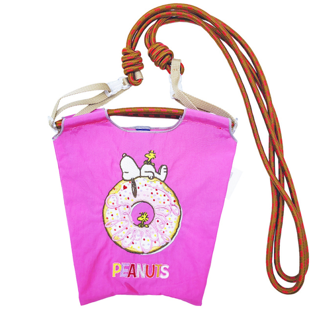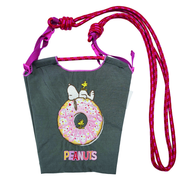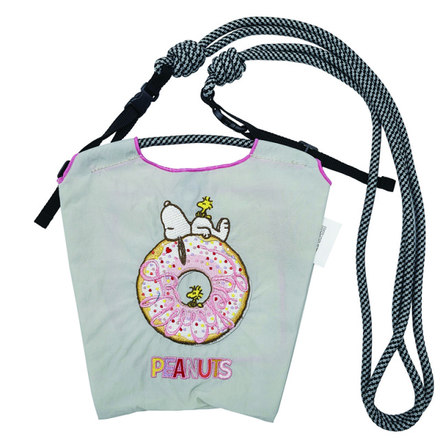 耐久性、撥水性に優れた厚手のポリエステル素材に、グラフィックデザインをそのまま「刺繍」で施すことで、高級感とデザイン性を高めたミニショルダーバッグ。ちょっとしたものを持ち歩きしやすいミニサイズが登場しました。丈夫なショルダーストラップ付きで、小さいながらも頼りになるアイテム。また、様々なアーティストや、カルチャーを発信している人とのコラボレーションに取り組み、バッグの売上の一部は日本赤十字社の活動資金として寄付されています。