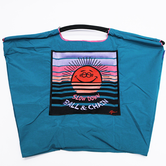 耐久性、撥水性に優れた厚手のポリエステル素材に、グラフィックデザインをそのまま「刺繍」で施すことで、高級感とデザイン性を高めたトートバッグ。こちらのBLUELABELシリーズはメインバッグとして持てるように横長のシルエット。持ち手が紐状になっているので、ハンドルの長さを変えられ、手持ち、肩掛けのトートバッグスタイルはもちろん、両サイドを引けばショッピングバッグスタイルになり、一か所から紐を引っ張れば巾着のようになり、そのままショルダーバッグとしても使用できるマルチな仕様。また、丸く折りたたむと手のひらほどのコンパクトサイズになるため、持ち運びにも便利です。普段のお買い物はもちろん、エコなプレゼントとしてもおススメです。そして、様々なアーティストや、カルチャーを発信している人とのコラボレーションに取り組み、バッグの売上の一部は日本赤十字社の活動資金として寄付されています。