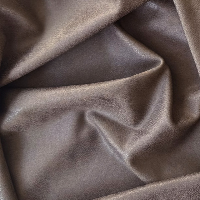レザーの様なテクスチャーを表面にコーティングした、驚くほど伸縮性のある素材を使用。見た目のクラックレザーのようなハードさからは想像できない程、縦にも横にも伸び、質感は柔らかく軽量なジャージ素材です。肌側のタッチが滑らかで冷たく、熱を保たないので暑いシーズンにも最適。股上が深いので、ウエスト位置の高さの調整で様々なレングスが楽しめます。ウエスト周りはゴムとドローコードで締め付け感がなく、脇線に切替えがないので、腰回りがスッキリ。落ち感が有る素材なので、意外なほどスリムに見え、オーバーサイズのトップスとも相性が良いのが特徴です。