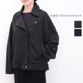 ライダースジャケットのデザインをミニマルにアレンジしたデザイン。メタルのドットボタンがシンプルな中にエッジーな印象を与えています。ゆったりしたサイズでソフトに仕立てているので、肩の力を抜いてサラリと羽織れるところがポイント。羽織るだけで、大人のラグジュアリーさがアップします。 薄手でしっかりと目の詰まったフラノのような表情のジャージ素材を使用しています。控えめな光沢としなやかなタッチが上品な印象の素材です。暖かみのある表情が存在感を引き立て、コーディネートに季節感を出してくれます。しっかりとした存在感からは想像できないほど軽く、リラックスした着心地が特徴です。