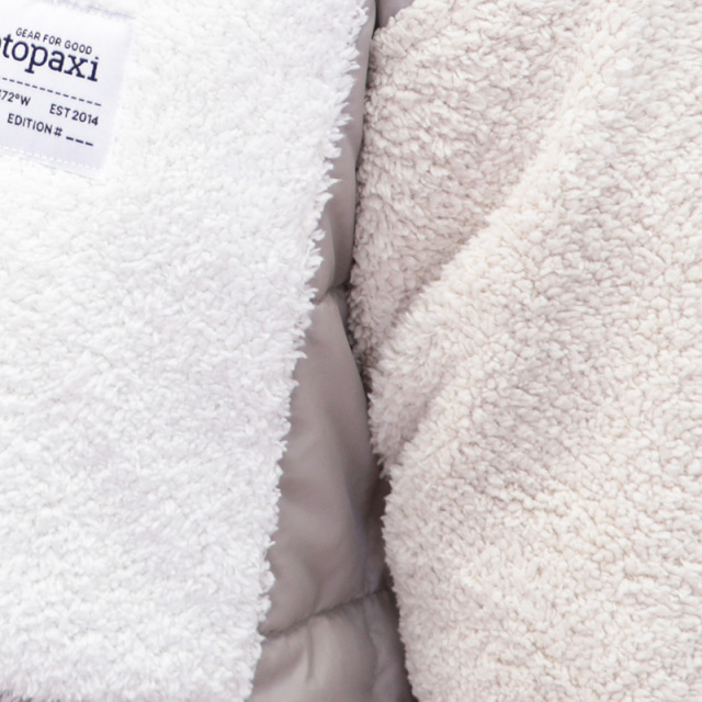・断熱材入りのキルティング生地とフリース生地の切り替えデザイン