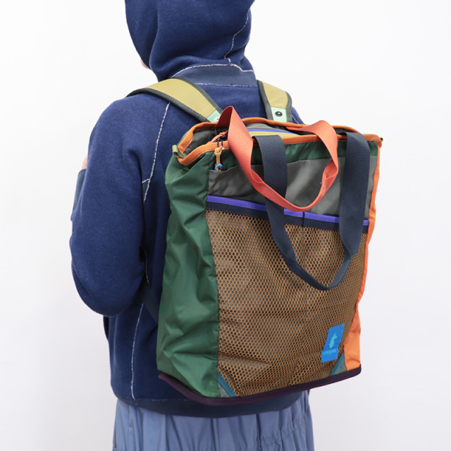 Todo 22L Convertible Tote は、トートバッグとバックパックの両方の役割をシームレスに果たし、街中でのアクティブな毎日をサポートします。ノートパソコンをバッグ内側のスリーブポケットに収納し、ボトルやサングラスを外側のメッシュポケットに収納すれば、街中を散策する際にも手軽に持ち物にアクセスできます。 高品質なデッドストックを用いて作られたオンリーワンのカラーパターンも魅力です。