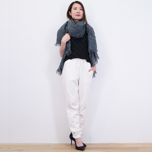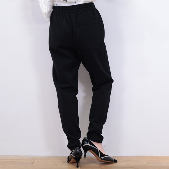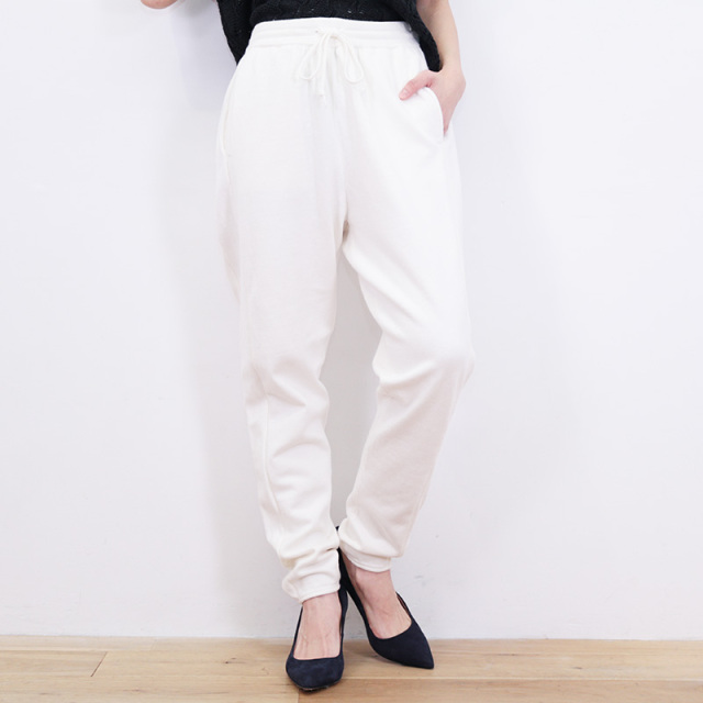 ノンストレスな穿き心地のコットンカシミヤニットパンツ。ハイゲージで綺麗めな表面感と、細身のシルエット、裾のリブがないことによりカジュアル過ぎず綺麗めな印象です。透け感は無く、目の詰まった弾力のある生地感でまだ肌寒い季節から一枚で着やすいところがポイント。リラックスした履き心地でデイリーにも旅行にもおすすめです。