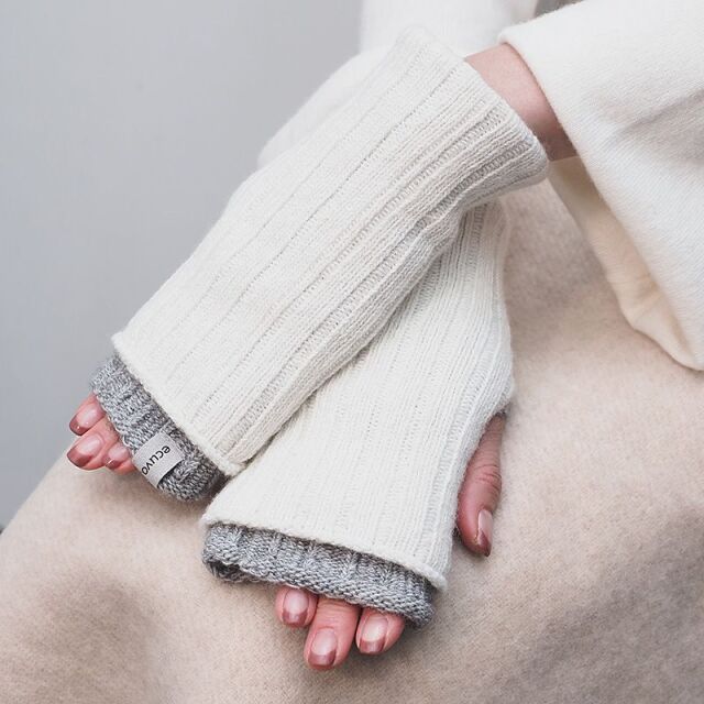 ecuvoのニットウォーマー、手触りもよく手につけると身も心もほんわかあったかな気持ちにさせてくれます。手首の出るトップスの時は長めに、寒い時は2重にしてと色々仕様を変えられるのも便利でこれからの季節に大活躍しそうです!