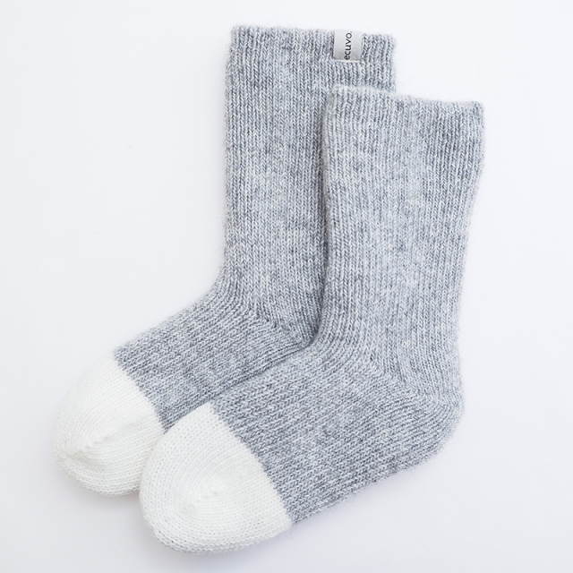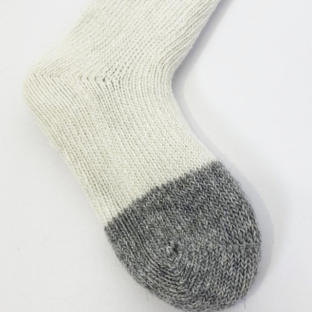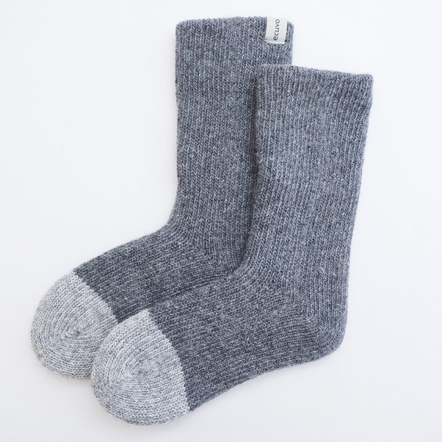 しっかりと厚みのあるウール地を二重に重ねて、より暖かく仕上がったリバーシブルソックス。柔らかい編地で締め付け感は無く、程よいフィット感がある為、お部屋でのリラックスタイムや家事の間に最適です。リバーシブルで二色楽しめ、表裏を交互に使うことで使用による負荷も分散できます。
