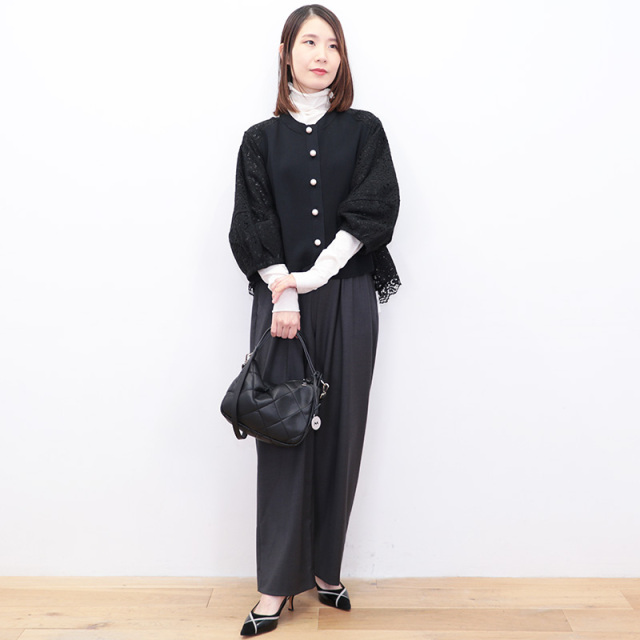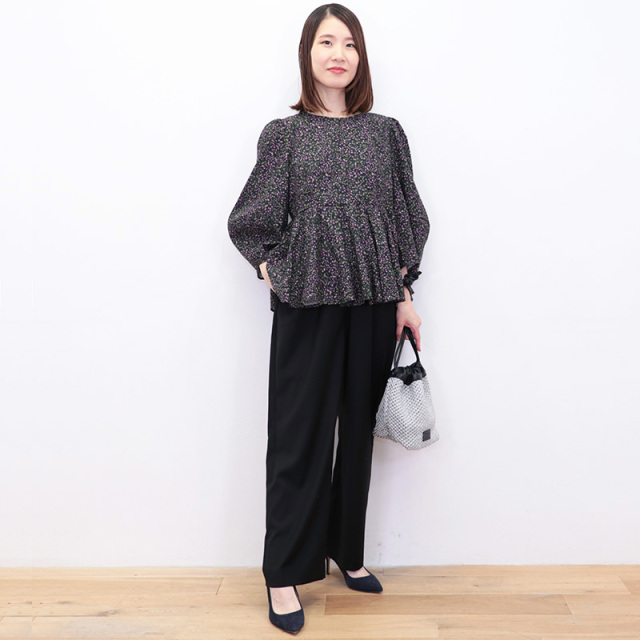 | モデルデータ | 身長 158cm/バスト 77cm/ウエスト 60cm/ヒップ 85cm/足のサイズ37/着用サイズ 36 ※サイズはおおよその目安です。 |