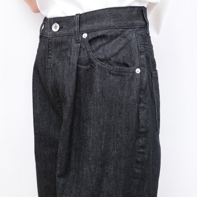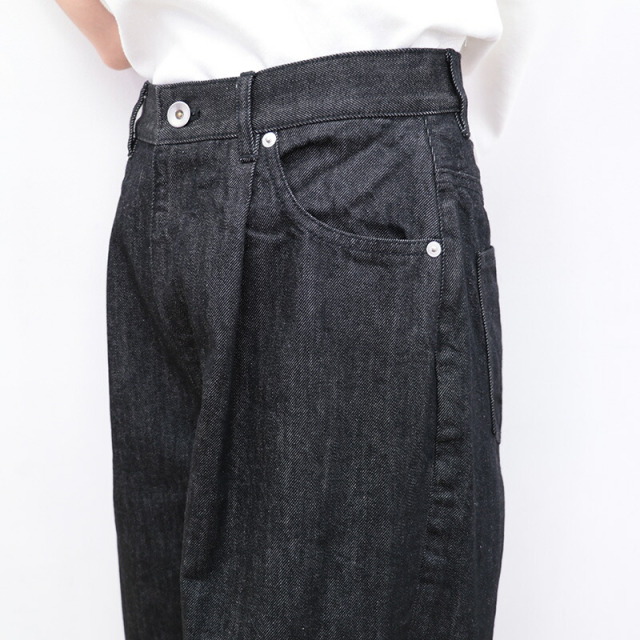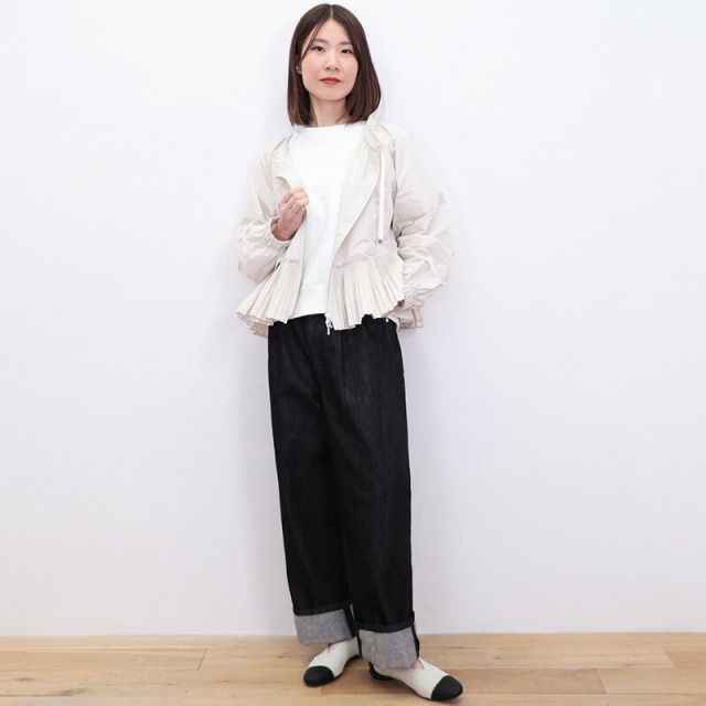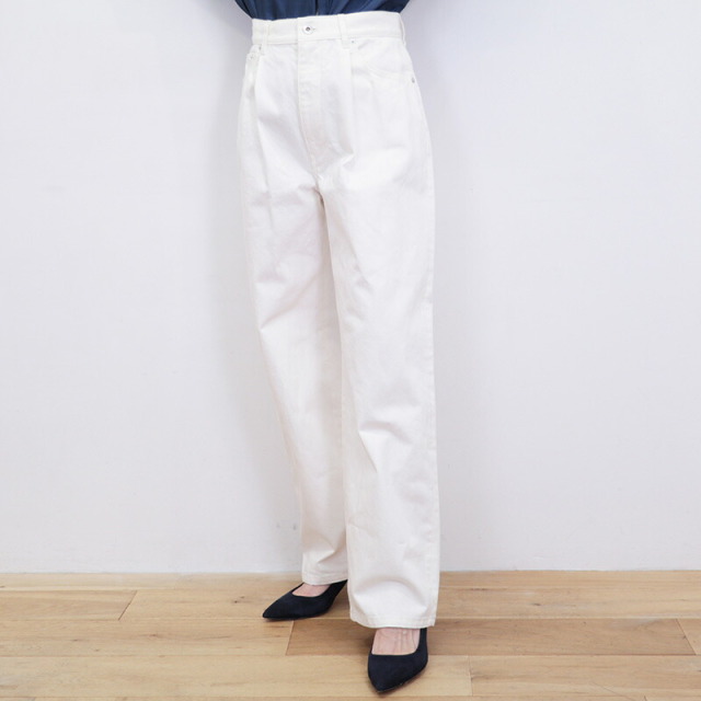 綺麗目にもカジュアルにも使えるワイドデニムパンツ。しっかりとした厚手のデニム生地と、高めのウエスト、フロントのワンタックで立体感のあるシルエットが完成しました。ベーシックなホワイトとブラックのシンプルなデニムなので、オールシーズンどんなトップスにも合わせやすくなっています。裾はその日のシューズに合わせて折り返してもOK。汎用性の高いデニムパンツは、大人の女性のワードローブに揃えておきたいアイテムです。