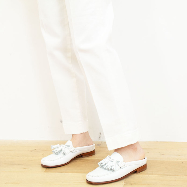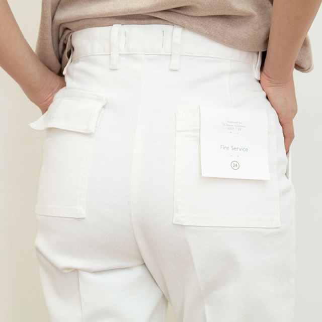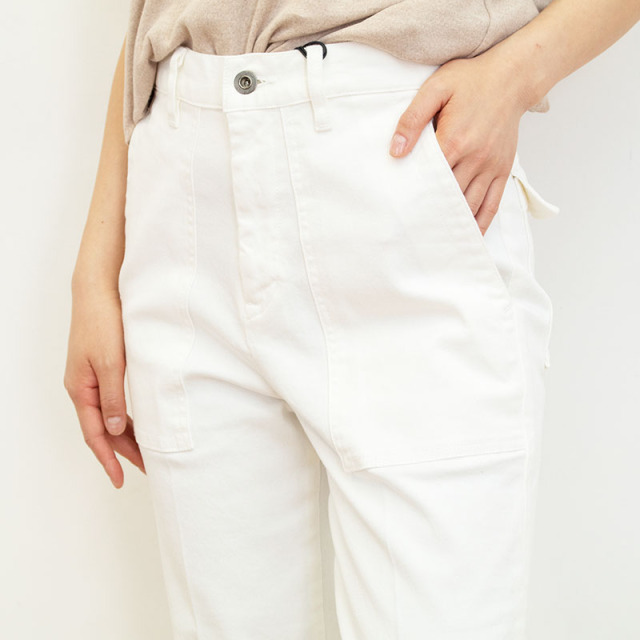 多くのショップで大人気の定番「BAKER PANTS」。爽やかなホワイトは、クリーンな印象と抜け感をプラスしてくれます。腰回りをすっきりさせ、ヒップから下はゆったりとテーパード。ポケットの設計まで計算されており、ラフな合わせでもキレイに仕上がる優秀パンツ。キレイめにもカジュアルにも、ボーイッシュにもレディースライクにも化ける万能なアイテムです。