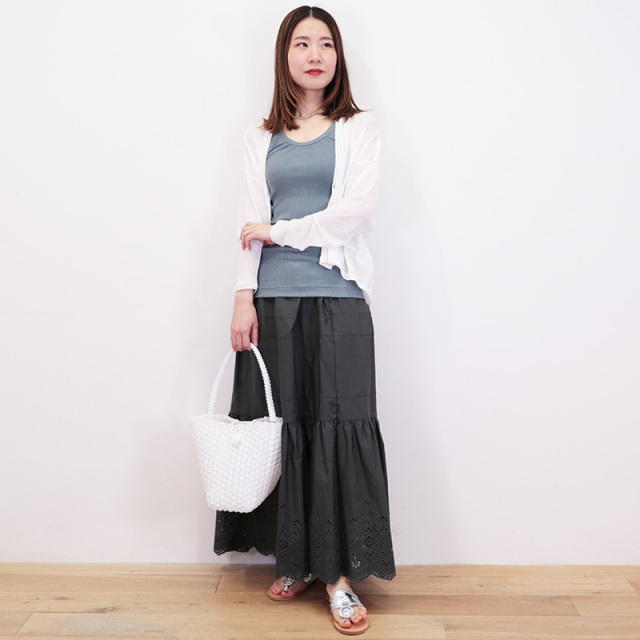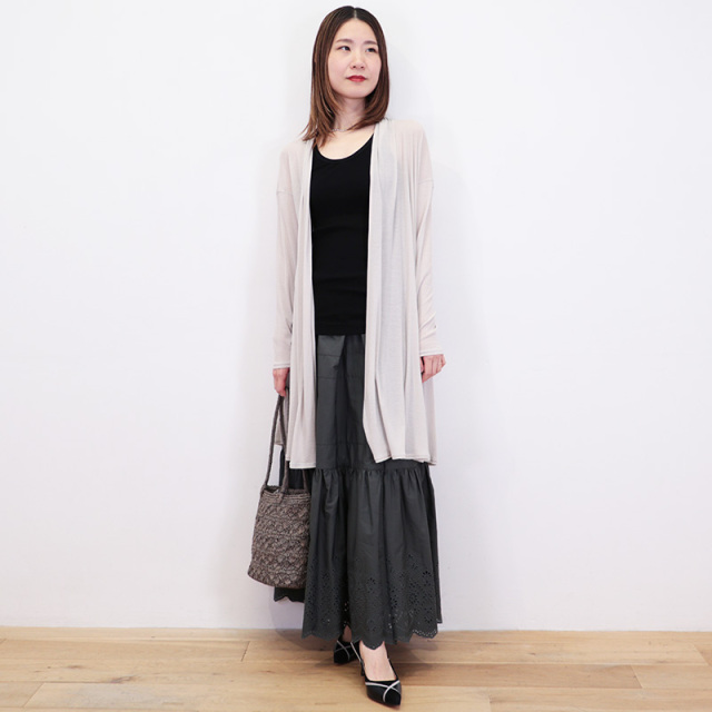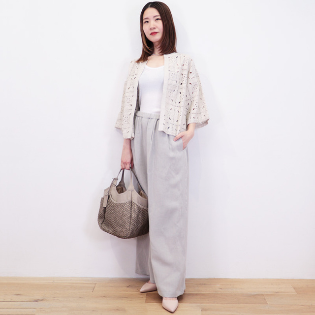 | モデルデータ | 身長 158cm/バスト 77cm/ウエスト 60cm/ヒップ 85cm/足のサイズ37/着用サイズ 3 ※サイズはおおよその目安です。 |