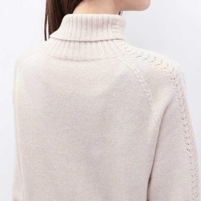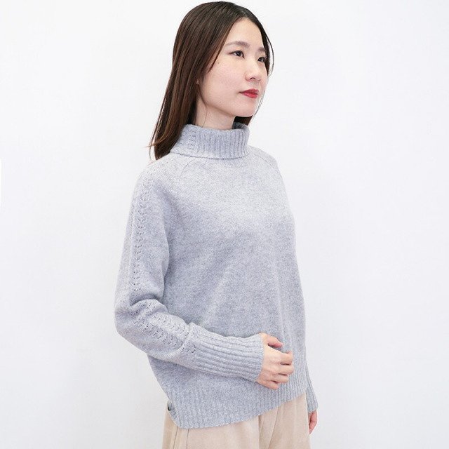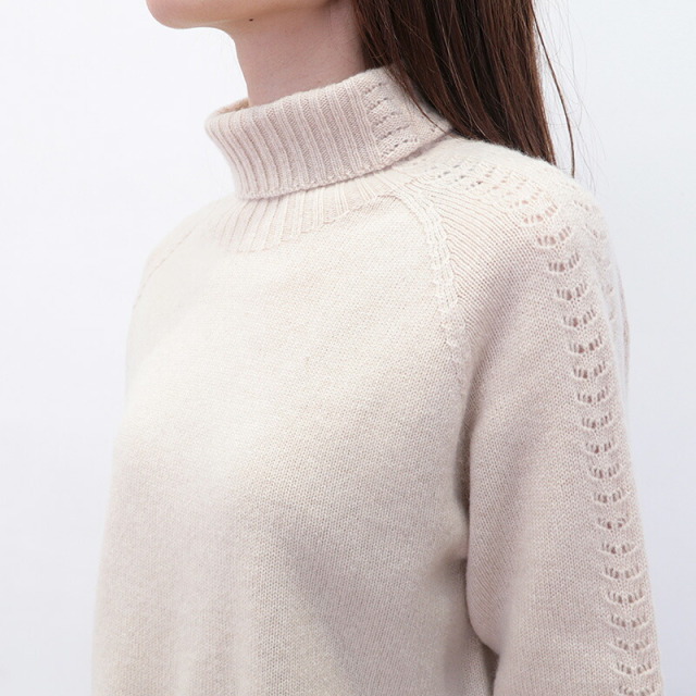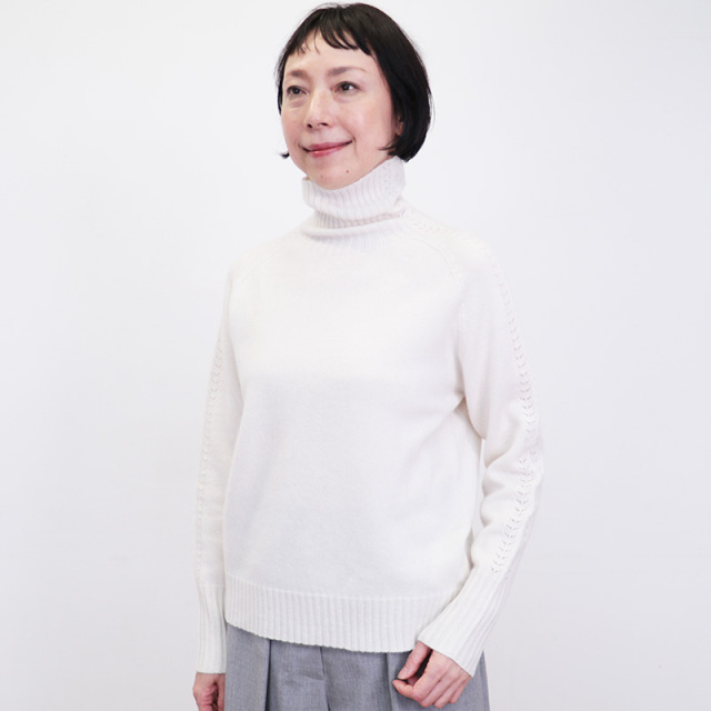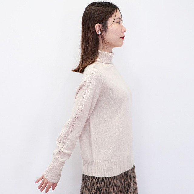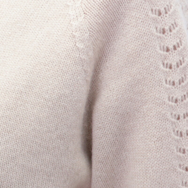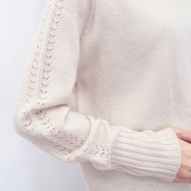 柔らかいカシミヤ生地が身体を暖かく包み込んでくれるセーター。ハイブランドでも採用されるランクの上質なカシミヤを100%惜しみなく使用し、アーム部分にさりげなく繊細な針抜き編みを施したエレガントな一着です。シンプルなデザインですが、一着で着映えする主役級のニットです。