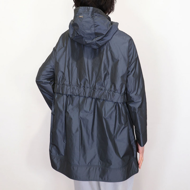 光沢のあるポリエステル素材で見た目にインパクトのある華やかなスプリングコート。程良い張り感となめらかさのあるポリエステル素材は、軽さとしわになりにくいのが特徴で、軽快な着心地です。背面のシャーリングやシルバーのパーツがデザインのアクセントになっています。