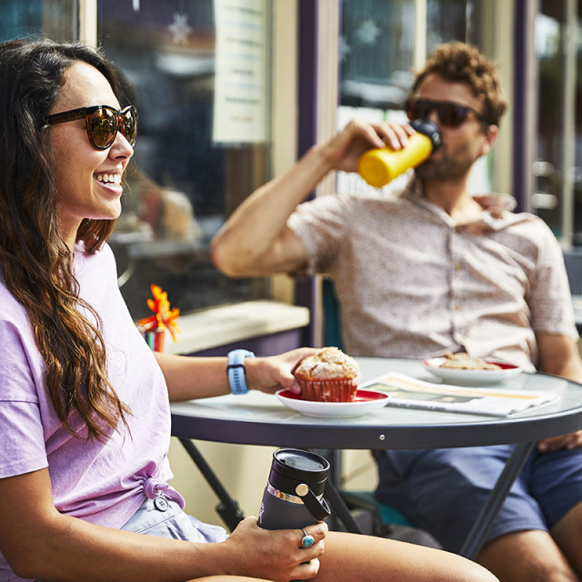 Hydro Flaskハイドロフラスク Hydro Flaskはオレゴン州ベンドをホームタウンと呼ぶことができます。この町は東は荒野、西は山地になっています。この地理は私たちが何者であるかについて多くのことを語っています。 そこでは仕事前にCone (近隣のスキーも楽しめる雪山)をハイキングし、素晴らしい眺めとともに熱いコーヒーを楽しむのは、珍しいことではありません。昼休みが一本道と太陽の光だけの世界を味わう時間帯になることは多く見られます。HydroFlaskは太陽の光が降り注ぐ暑いビーチで氷のように冷たい水を、スキー場のリフトの上では熱いコーヒーをご提供します。キャンプでたき火の薪を集めているとき、キャンピングチェアのそばで根気よく冷たいビールを携えてあなたの帰りを待っています。あるいは、ハイキングの間中、ずっとあなたののどを潤し続けます。「氷よし、水よし、さぁ行こう!」 登山口まで車で向かい、2000フィートを登りきり、その眺めを楽しんでいる5時間後のあなたは依然、手もとに氷と水を持っているのです。朝もやのかかった、ニジマスの泳ぐ川の岸辺で熱い紅茶を楽しむ、雪道で子供たちを熱いココアでほっとさせる、土曜日の午後ヨガをしながらお気に入りの飲み物でリフレッシュ。HydroFlaskがあればこんなことが可能なのです。Hydro Flaskはお出かけのお供だけでは終わりません。お出かけが素晴らしいものになるお手伝いをいたします。