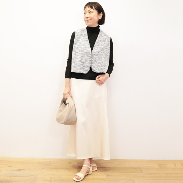 | モデルデータ | 身長 158cm/バスト 77cm/ウエスト 60cm/ヒップ 85cm/足のサイズ37/着用サイズ FREE シルバー、コアイ、ブラック:身長 170cm/バスト 87cm/ウエスト 68cm/ヒップ 91cm/足のサイズ37/着用サイズ FREE ※サイズはおおよその目安です。 |