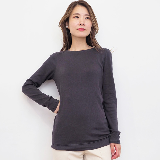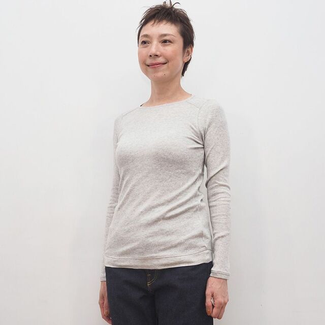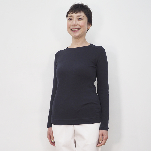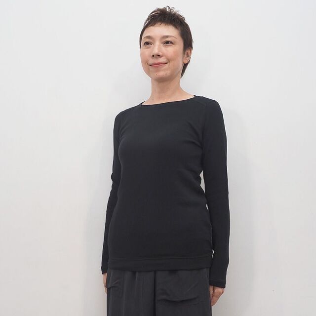 日本で開発された国内2台のみの編み機を使用し、少し膨らみのあるな素材感で、優しい伸縮性と空気を含む軽さが特徴です。