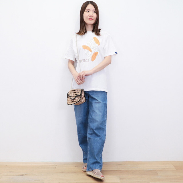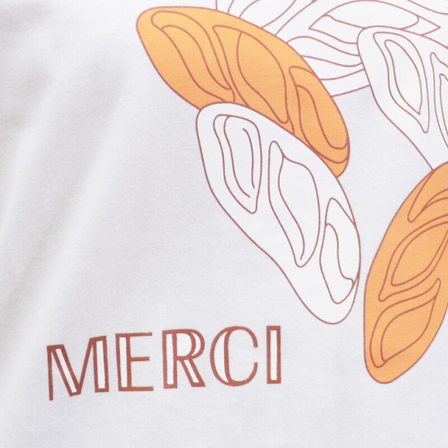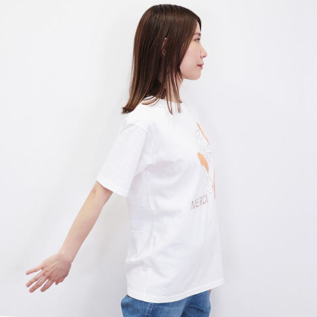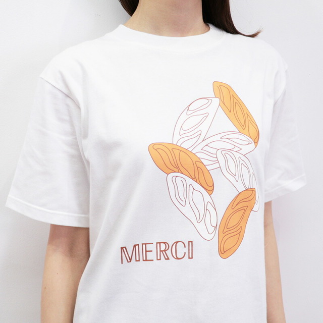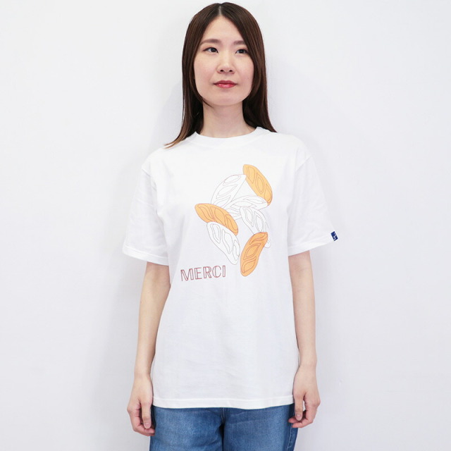心地よい上質なコットン素材のベーシックなTシャツに、遊び心あふれるグラフィックがデザインされた、フランス発のTシャツ。マスコットキャラクターであるシロクマのラファエルが、各地を旅したエピソードを元に、それぞれの柄をデザインしています。こちらは、パン屋さんで焼きあがったバタールのイラスト。ホワイトとオレンジの二色使いが個性的で爽やかです。