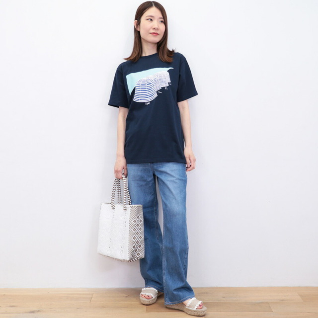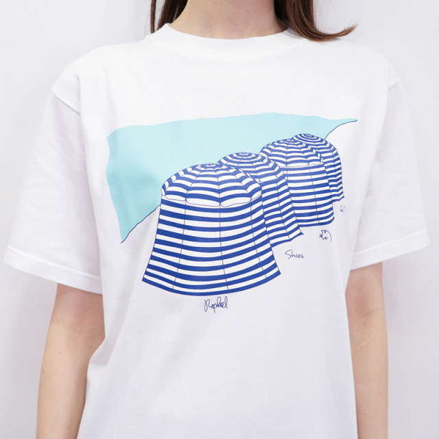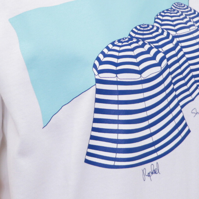 心地よい上質なコットン素材のベーシックなTシャツに、遊び心あふれるグラフィックがデザインされた、フランス発のTシャツ。マスコットキャラクターであるシロクマのラファエルが、各地を旅したエピソードを元に、それぞれの柄をデザインしています。こちらは、ラファエルたちが各々専用のパラソルの中で、シエスタ(長いお昼寝)をしているところ。ゆっくりとした癒しの時間が感じられます。