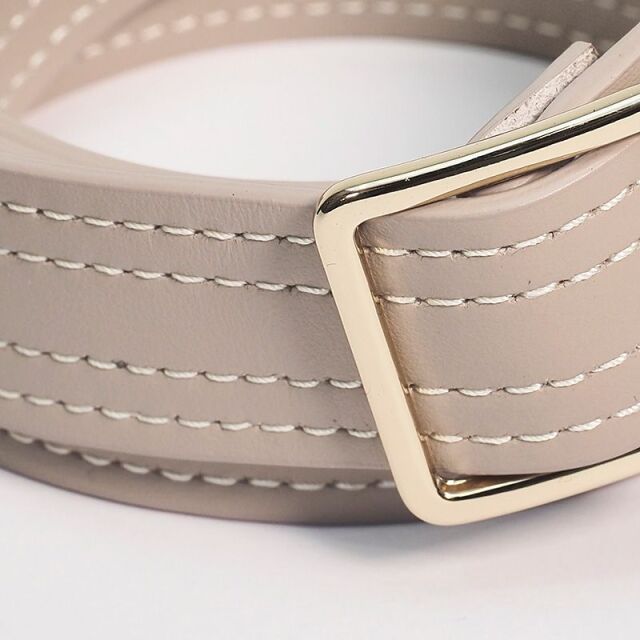 しっかりとしたレザーの質感が楽しめるイタリア製の本革ベルト。シンプルな金具に通して軽く結べば、合わせる洋服を選ばず程よく抜け感のあるスタイルに。ステッチのデザインで高級感アップ。