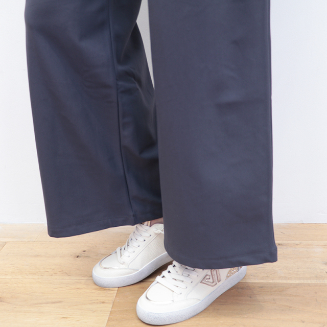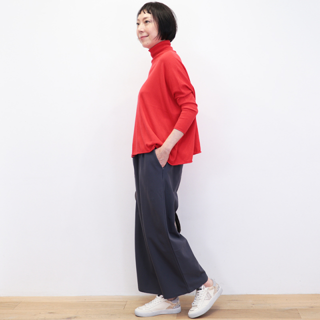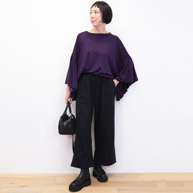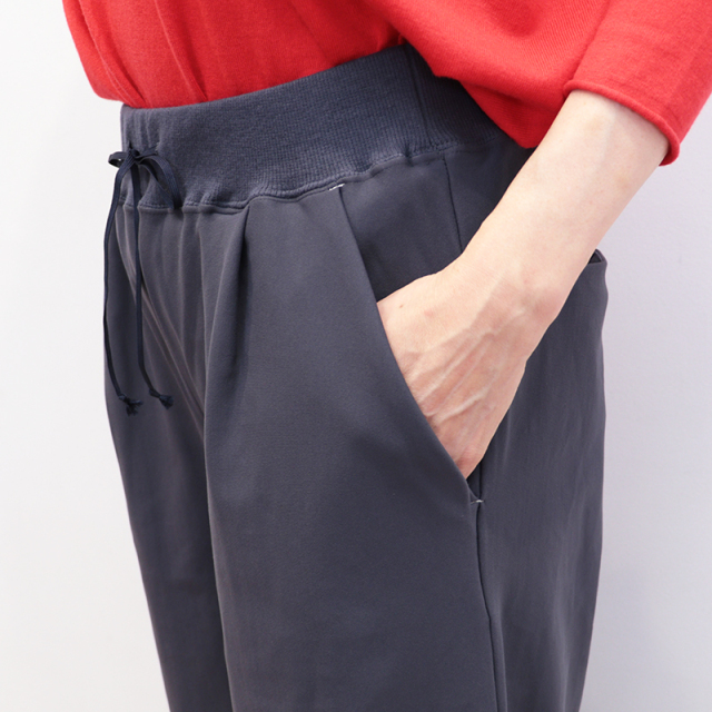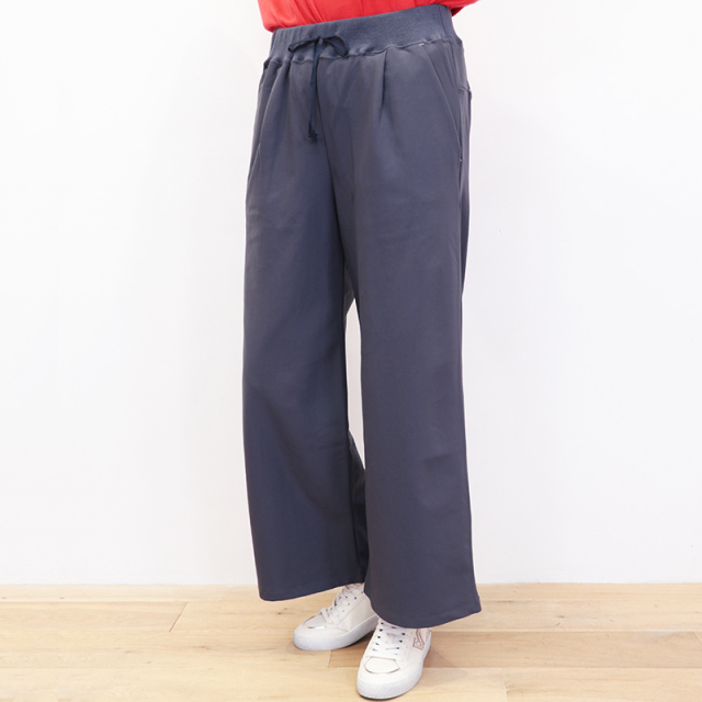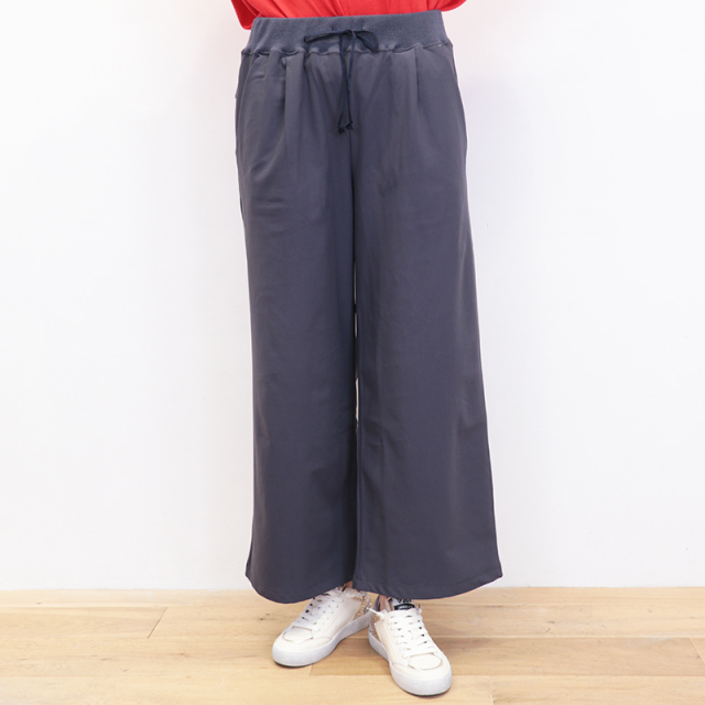 内側が起毛素材で暖かなジャージワイドパンツ。寒い季節に穿いた瞬間から暖かく、快適に過ごすことが出来ます。 裏起毛でも毛足は短く表面もスムースで、比較的薄手なところが季節の変わり目から着やすいポイント。落ち感があり、着ぶくれせずにスッキリと穿いていただけます。