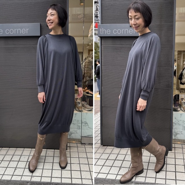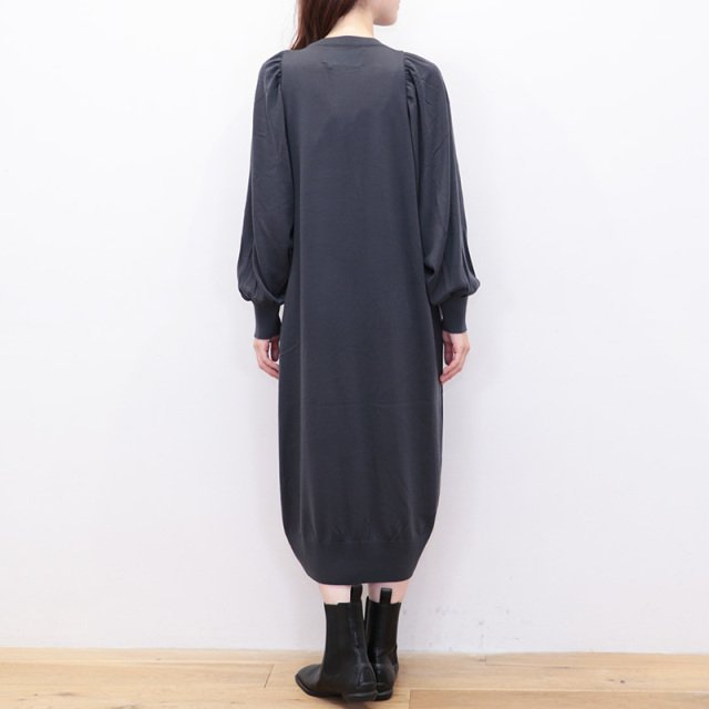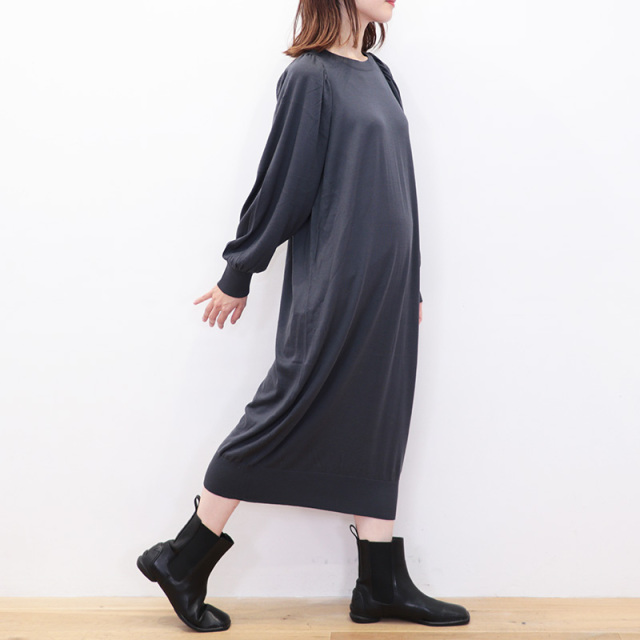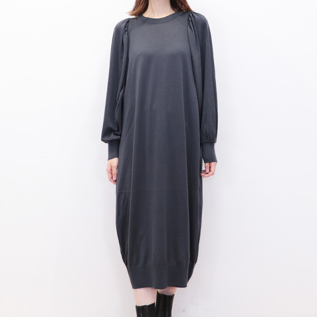 繊細なウール糸を100%使用したハイゲージニットワンピース。オーストラリア産、スーパーエクストラファインメリノの中でカシミヤに続く厳選された細い繊度のウール糸を使用しています。編み組織は1インチ間(2.54cm)に編み針が18本入っている、ニットでは希少性の高いハイゲージ。繊細な表情で、美しい光沢と存在感を演出します。内側から入ったギャザーは肩幅を問わずボディを華奢に見せてくれます。袖や裾のキュッとしたリブでメリハリが生まれ、ドレスの様なシルエットに。長すぎず短すぎない着丈なので、ハイカットスニーカーやロングブーツとの相性も抜群。スイッチシーズンに一枚で着映えする主役アイテムです。