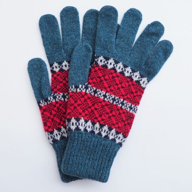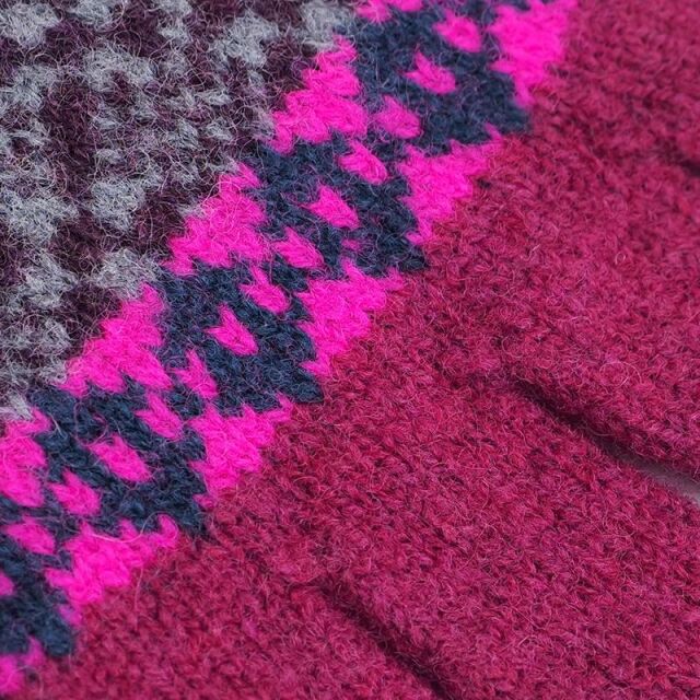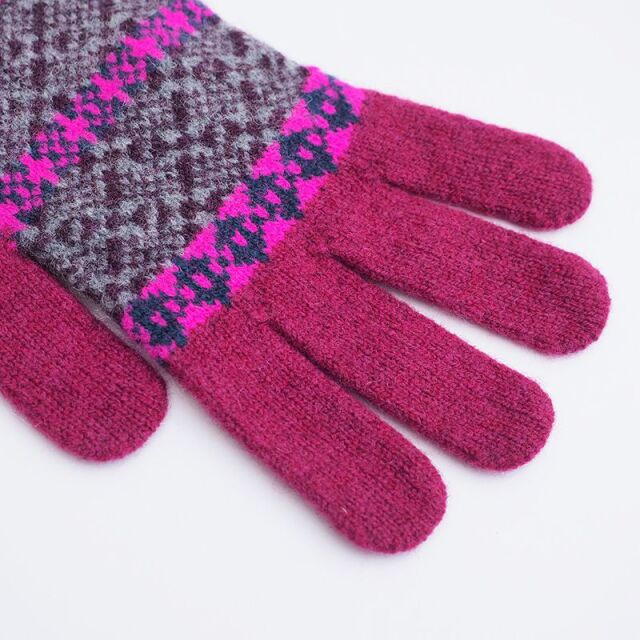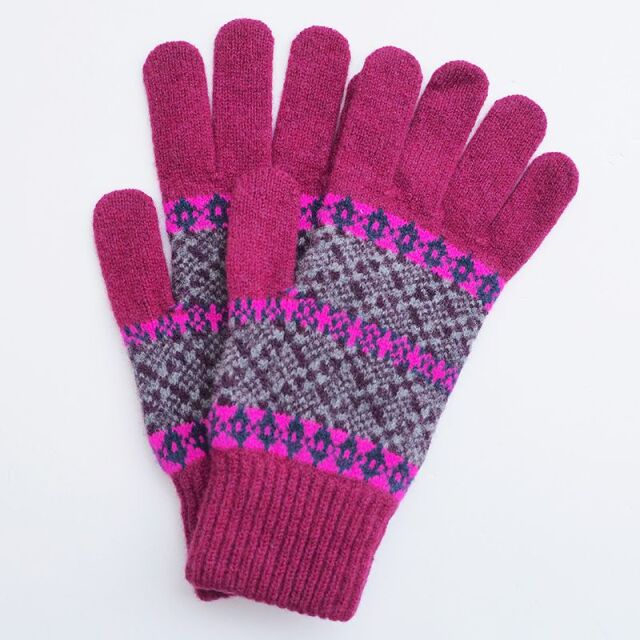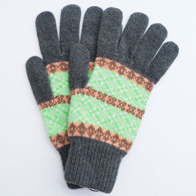 柄とカラーに暖かみがあり可愛らしいグローブ。少しレトロな印象で、コーデに遊び心をプラスしてくれます。スコットランドの大自然の中で育ったピュアなウールを丁寧に編み上げたニット小物は、デザイン性・肌触り・暖かさを兼ね備えています。個性的で華やかなデザインなので、ギフトにもおすすめです。