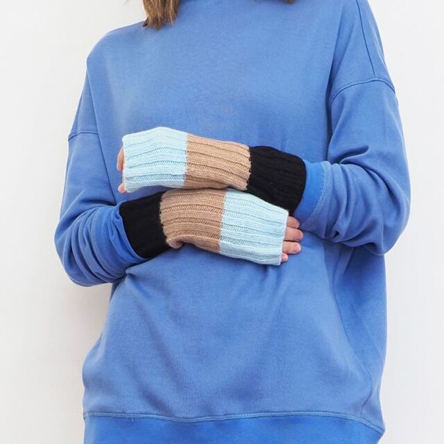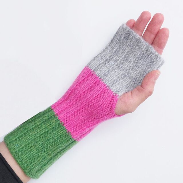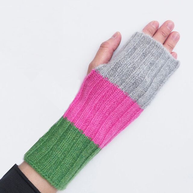 カラフルなフィンガーレスグローブ。目を引く配色で、重たくなりがちな冬場のコーディネートを華やかにしてくれます。スコットランドの大自然の中で育ったピュアなウールを丁寧に編み上げたニット小物は、デザイン性・肌触り・暖かさを兼ね備えています。個性的で華やかなデザインなので、ギフトにもおすすめです。