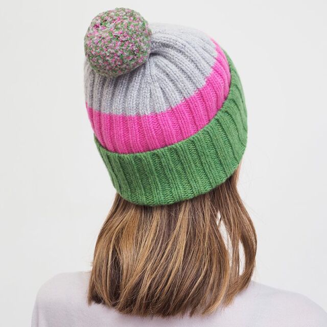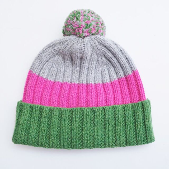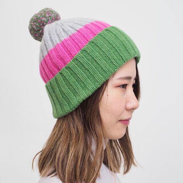カラフルなニットキャップ。重たくなりがちな冬場のコーディネートを華やかにしてくれます。ポンポンがミックスカラーになっているのもポイント。スコットランドの大自然の中で育ったピュアなウールを丁寧に編み上げたニット小物は、デザイン性・肌触り・暖かさを兼ね備えています。個性的で華やかなデザインなので、ギフトにもおすすめです。