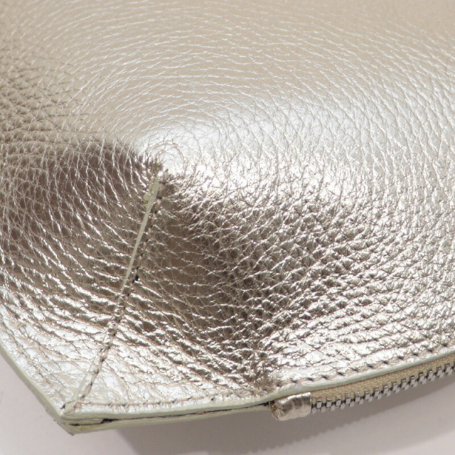 風合いのあるしっかりとしたシボ革にメタリック加工を施したアクセサリーのようなミニバッグ。秋冬のシックなコーデに映える、華やかで可愛らしいアイテムです。小さく見えて、スマートフォンが入り、ファスナーが閉まる実用的な仕様。長めのストラップで斜め掛けも可能です。