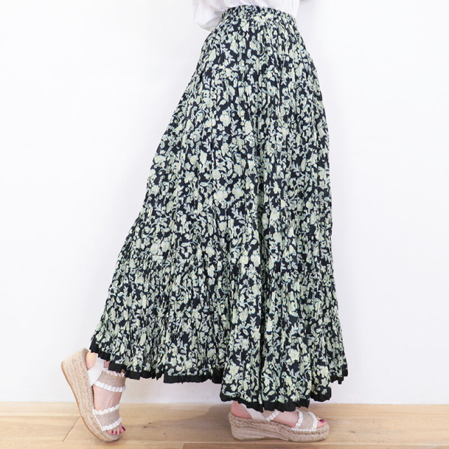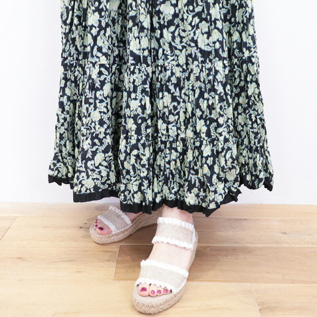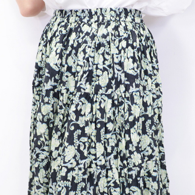 空に浮かぶ七色の虹をイメージしてデザインされた「草原の虹のスカート」。シンプルなトップスに合わせるだけで華やかな雰囲気を演出できる定番人気のデザインです。素材は肌触りの良いインド綿100%で、裏地付きなので一枚で気兼ねなく着用できます。上質なコットン素材は軽やかで、ボリュームがありながらも動きに合わせて軽快に揺れる裾が魅力的。華奢なサンダルをあわせてフェミニンに、スニーカーを合わせてカジュアルにと、あわせるアイテムで印象が変わります。