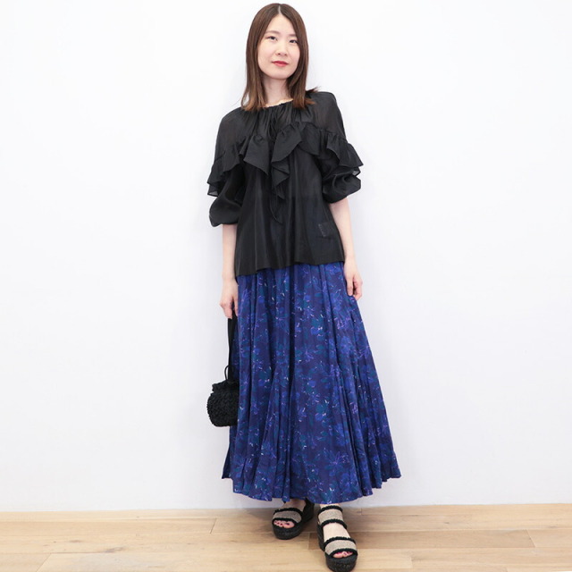 動くたびに裾が揺れ、美しい印象を残す「月影のスカート」。素材は肌触りの良いインド綿100%で、裏地付きなので一枚で気兼ねなく着用できます。上質なコットン素材は極薄手で、ボリュームがありながらも履き心地は軽やか。ハッとするような鮮やかなブルーで、これからの季節の主役になり、涼し気な印象をアップしてくれます。