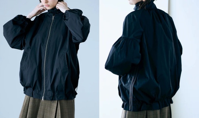 光沢とハリが魅力の、高密度ポリエステルタフタ素材を使用したボリュームスリーブのミディ丈ブルゾン。 シャープな印象の立ち衿に、ラグランのボリューム袖が好バランスのライトアウターです。 脇や裾を絞り調節できる仕様で、ふわっとさせてフェミニンに、オーバーサイズでモードライクに着崩すアレンジも可能。裏地付きで軽くて風を通しにくい素材なので、薄手ながらも頼もしい防寒性を持っています。オーバーサイズなので、中にインナーダウンや厚手のトップスも着やすく、長いシーズン活用いただけます。
