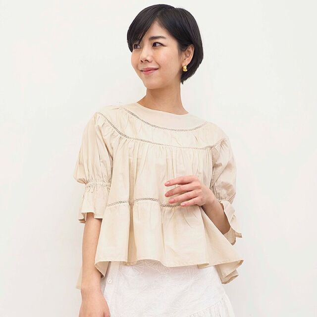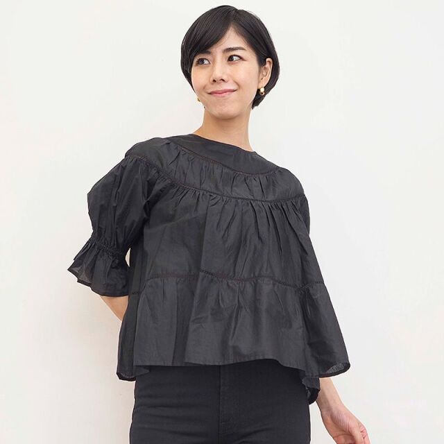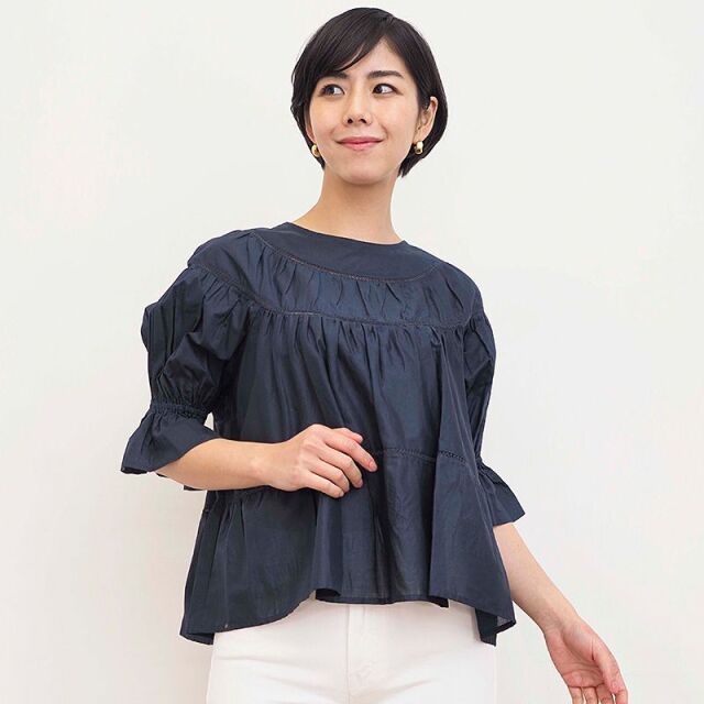 ブラウスファンも多いMerlette待望の、ティアードブラウスが登場しました。デザイナーMarinaもお気に入りのパフスリーブは袖口にゴムが施されているので、簡単に袖をまくしあげることが出来ます。肩幅が狭くても広くてもカバー出来、体型を問わないデザインです。