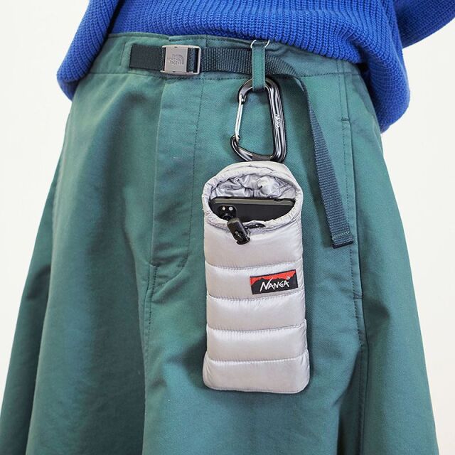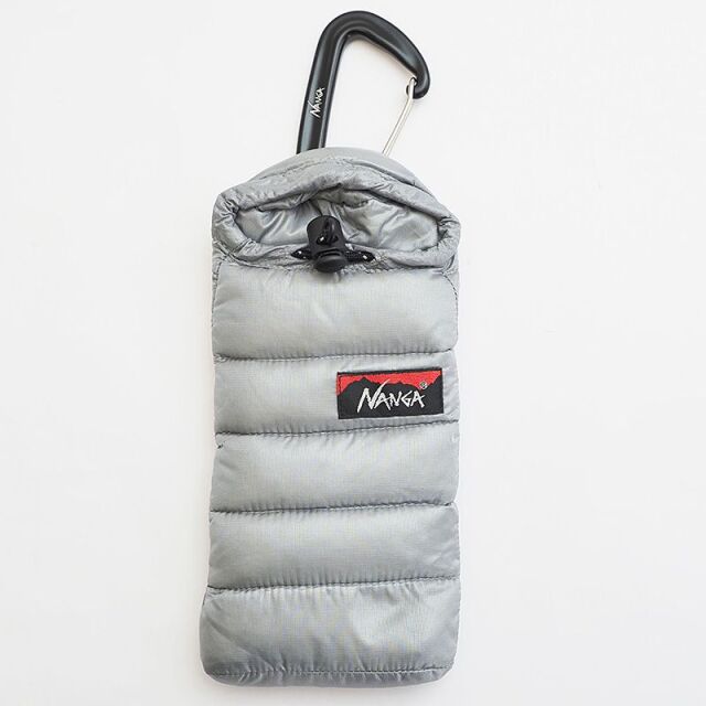 遊び心のある寝袋型のスマホケース。本格的なダウン仕様。スマートフォンやアクセサリーなどを収納して持ち歩くことが出来ます。カラビナが付いておりますので、バッグやデイジーチェーンにかけて使用することが可能となっております。