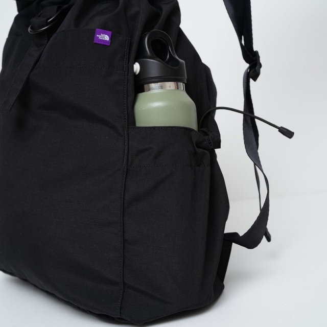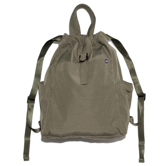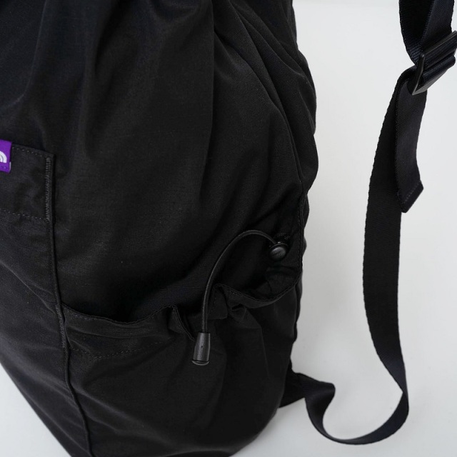 コンパクトで軽量なデイパック。たて糸にリサイクルポリエステル、よこ糸にはリサイクルポリエステル糸とポリエステルウールの混紡糸を使用しています。 環境に配慮した、フッ素系化合物を使用しないPFCフリーのはっ水加工で機能性をプラス。80年代にTHE NORTH FACEで作られたデイパックをベースに、素材やディテールをアップデートしました。一見タウン向けなデザインですが、小物の仕分けに便利なポケットを様々なパターンで多数搭載しており、とても機能的。調節可能なシャーリングゴムを緩めてハンドルを持つと、トートバックとしても使用できます。