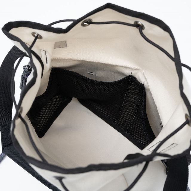 イタリアPARA社のTempotest® ファブリックを使用したトートバッグ。テントやデッキチェアなど屋外用途に使用されている生地で、はっ水性を兼ね備える機能的素材です。80年代にリリースされたTHE NORTH FACEのデイバッグをベースに、トートバッグ仕様にアレンジしました。ブランドをイメージさせるパープルカラーをミックスしたコードストラップをつけることで、ショルダーバッグとしての使用が可能。内側に衝撃を和らげるメッシュパッドポケットを装備している為、細かいものの持ち運びにも便利。トートバッグよりも機能的で、リュックよりもタウンユースしやすく、日常にも旅行にも使いやすいバッグです。