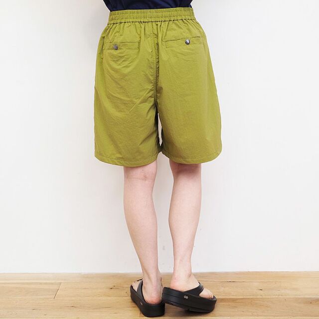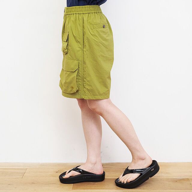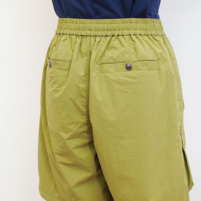 軽快な風合いの25デニールナイロンリップストップ素材を使ったハーフパンツ。沢山のポケットで本格的なアウトドア仕様。環境に配慮し、表地にはフッ素系化学薬品を使用しない「PFCフリー」のはっ水加工を施しています。裏地にはリサイクルポリエステルメッシュを使用し通気性を考慮。生地の染色には廃棄される植物を活用した天然由来の染料(ブラックは竹炭)を採用し、植物由来ならではのナチュラルな色合いが特長です。