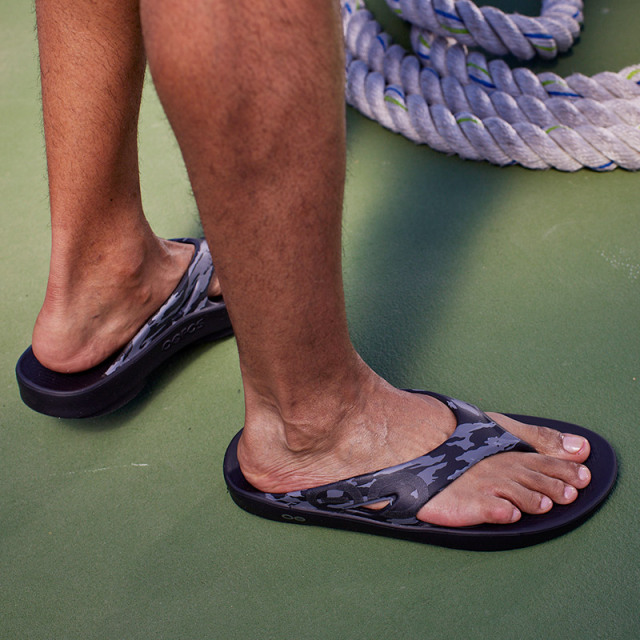 一見シンプルなビーチサンダルのようで、実は最新の機能を兼ね備えたリカバリ―サンダル。遊び心のあるカモフラ柄のプリントモデルが新登場。「リカバリーシューズ」とは、足の負担をやわらげて、疲れた足をリカバリー(回復)することを目的に作られた靴のことです。運動後の疲労した足を回復させることを目的としたリカバリーシューズですが、運動後のみならず、例えばウォーキングや立ち仕事の後、 ヒールの高い靴や靴擦れで足が疲れてしまった後に、このリカバリーシューズを履くことで、足がリラックスできて、より早く回復できる仕組みとなっています。