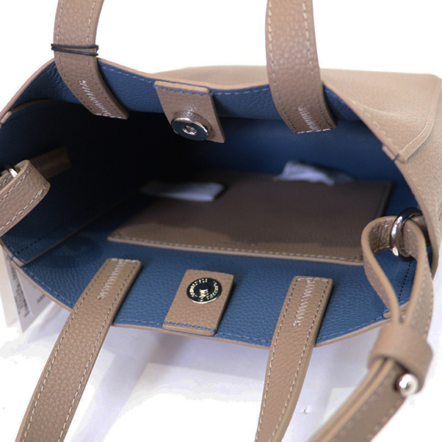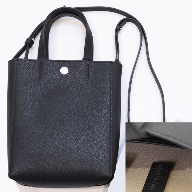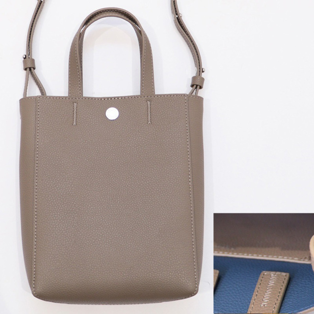 ショルダーストラップ付で2WAY仕様のミニトートバッグ。シボ革のオールレザー仕様で、高級感のある表情に仕上げています。内側も表と同じレザー表面を使用しており、ちらっと覗く鮮やかな配色が特徴です。内ポケット付きで細かいものを収納可能。本革の上品でミニマルなデザインは、きちんと感が有りオンオフ問わず合わせやすく重宝します。