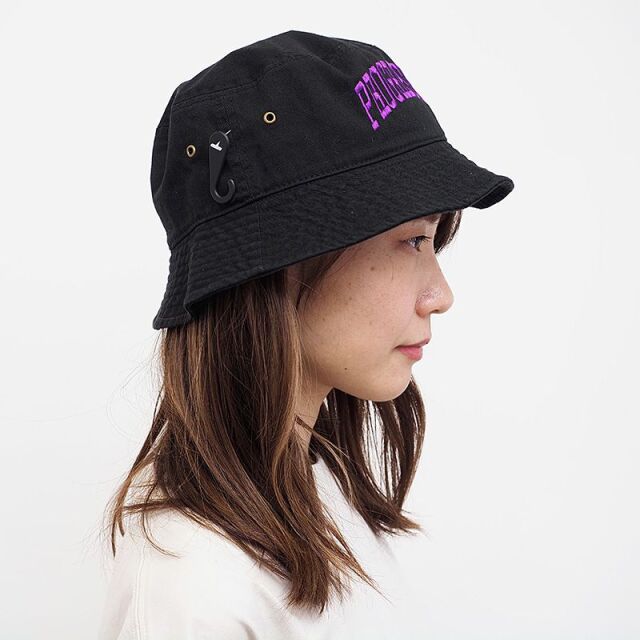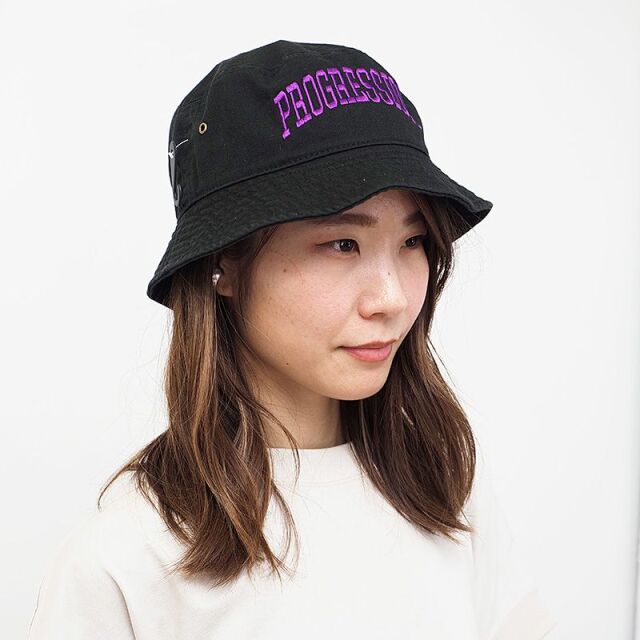 80年代から90年代のランニングカルチャーに影響を受け頃中に発足したロンドンの「PROGRESS RUNNING CLUB」。「前向きに前進して走り続けよう」というメッセージを込めたスポーティーなアイテムを展開しています。こちらはフロントにロゴを刺繍したバケットハット。ブラックにパープルが映えるレトロ・ストリートなデザイン。コーデのワンポイントにおすすめです。