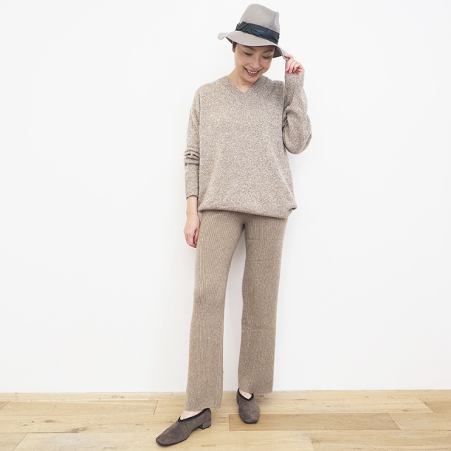 | 補足 | ※上記はモカブラウンカラー(無染色)の実寸です。グレーカラーは染色加工により、上記実寸より1-2cm程度股下が短く仕上がっております。 ニット製品の為サイズには個体差がございます。 |