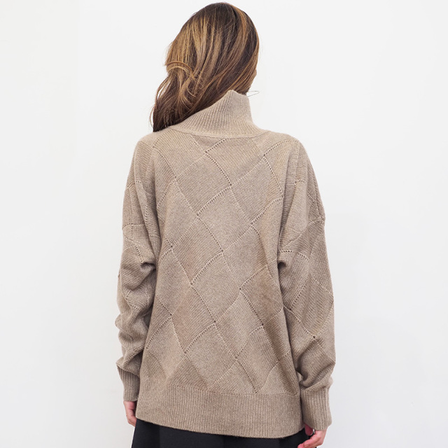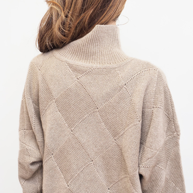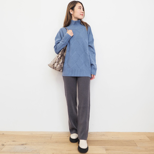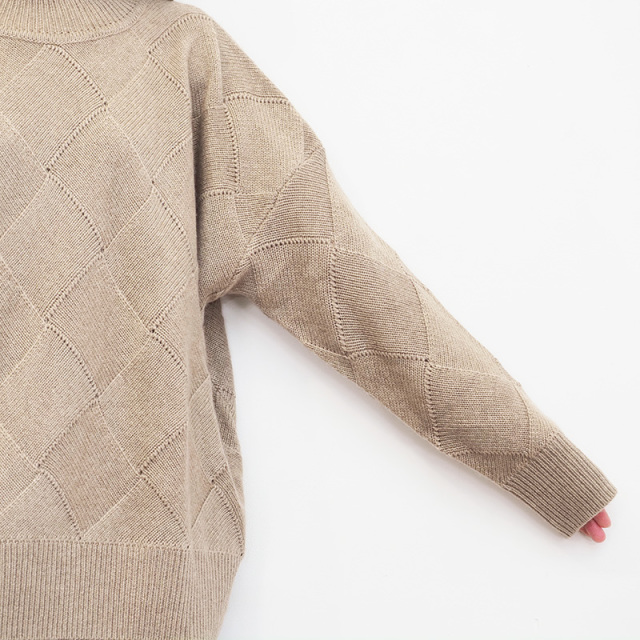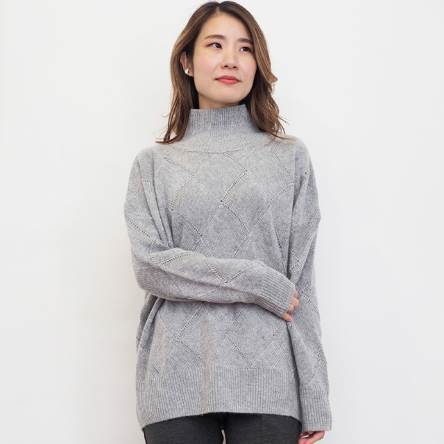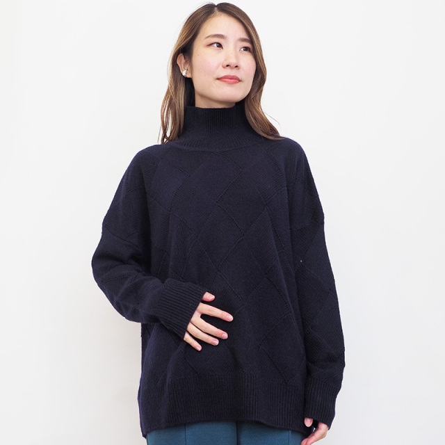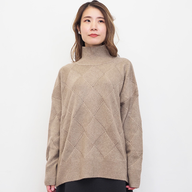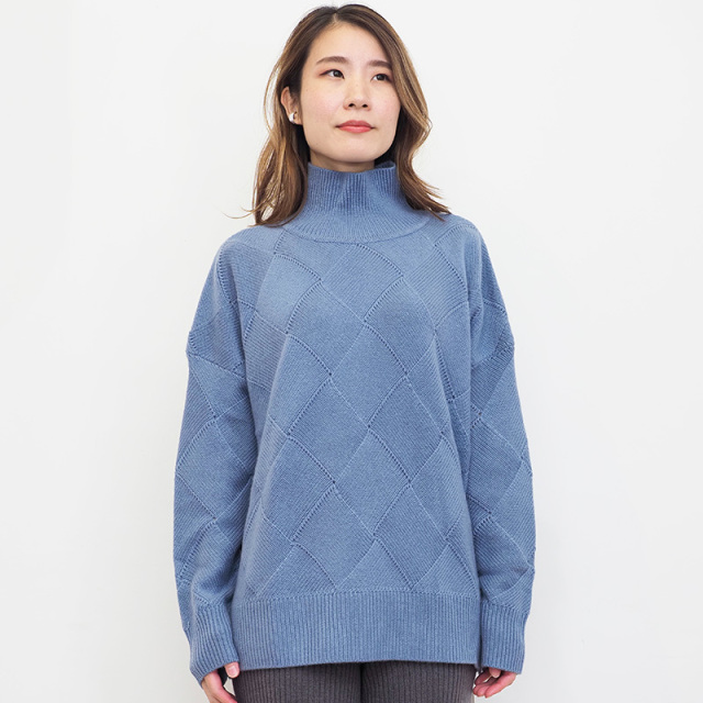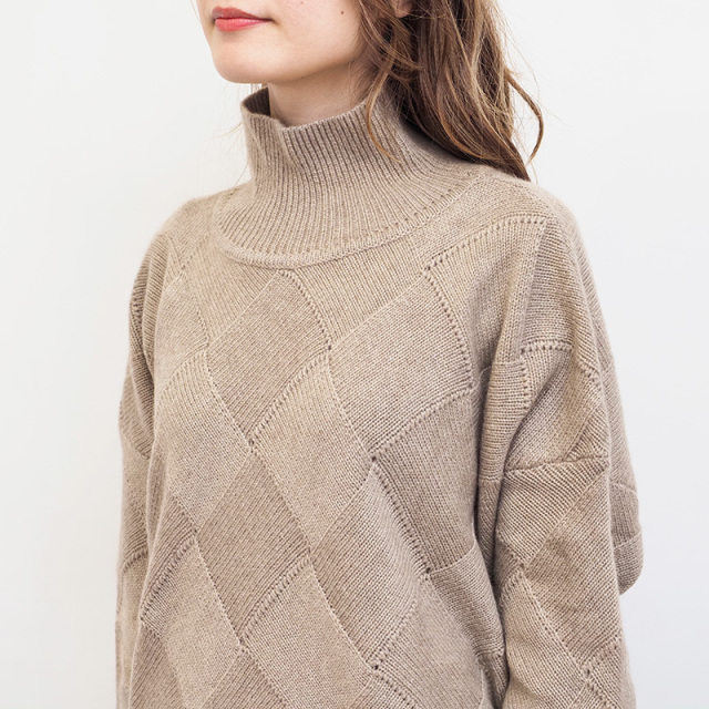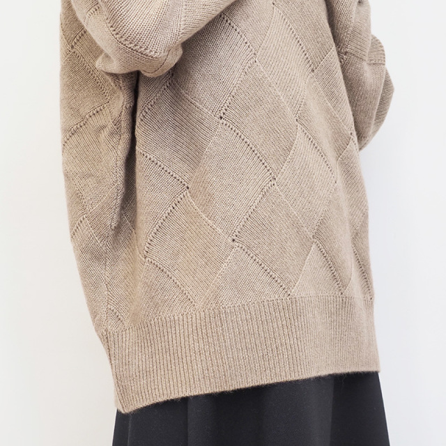素材からパターン、サイズまでアプトが一からこだわってデザインしたカシミヤ混の贅沢なニット。デザイン性の高いバスケット柄編みに仕上げました。素材はウール70%、カシミヤ30%ですが、高等級なカシミヤを使用している為、全体の質感はカシミヤ100%のようになめらか。 ゆったりとリラックスして着られるシルエットなので、皮膚の刺激や締め付け感が気になる方にも安心して着ていただけます。