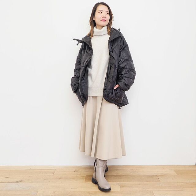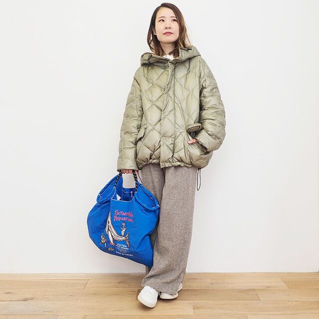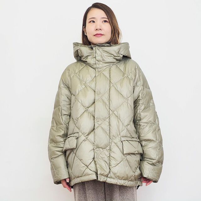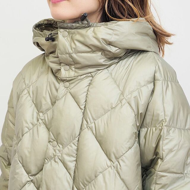 超軽量ナイロン素材を表地に使用したダウンコート。ミリタリー感の強すぎないシャイニーな素材感で、タウン向けのコーデにも良く馴染みます。トレンド感のあるオーバーサイズ設計ですが、ダイヤキルティングはシャープな印象で、裾を絞ることによりシルエットを変え、風の侵入を防ぐことも可能。中に厚手のトップスを着る余裕もあり、長いシーズン着用できるコスパの良いダウンアウターです。