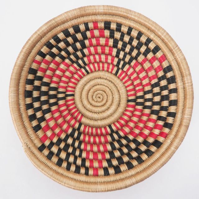 ルワンダの女性たちによって受け継がれる伝統工芸。一見機械で仕上げた様なクオリティの高さは、その全てが手作業。芯材のイシンギ草に、サイザル麻から繊維を抽出し美しく染めあげ巻きつけ編みあげていきます。一針ずつ柄のバランスを保ちながら、ひとつのバスケットが完成するまで約1週間。 繊細で個性的なデザインは、メッセージが込められたルワンダ復興のシンボル。平和への願いが表現され、ひとつ置くだけで絵になる美しさがあります。バスケットとしてはもちろん、底には専用紐が取り付けてあり、ウォールアートとして壁掛けインテリアでもお使いいただけます。ルワンダの女性たちに受け継がれる伝統工。そのクオリティの高さはハンドメイドとは思えない美しさ。サイザル麻の繊維を抽出し染めあげ、巻きつけ編みあげ、ひとつのバスケットが完成するまで約1週間。ルワンダの伝統や平和への願いが表現され【Peace Basket:平和のかご】と呼ばれる、ルワンダの平和のシンボルです。▼高いクオリティと壁掛けインテリア個性的なデザインは、手作業とは思えない繊細さと美しく高いクオリティ。ひとつ置くだけで絵になる美彩があります。またお菓子や果物を入れるバスケットとしてはもちろん、底の専用紐でウォールアートとして壁掛けインテリアでお使いいただけます。
