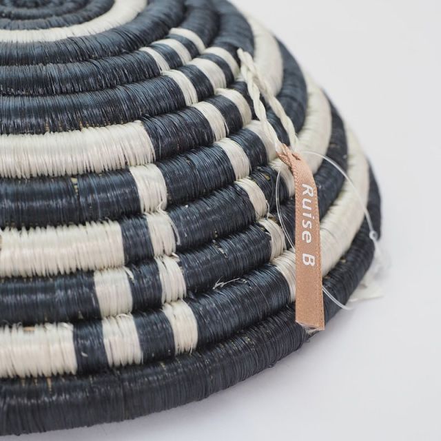 RuiseBルイズビィ ルワンダ人女性 ルイーズ「Louise」の名に、ルワンダ(Rwanda)の「R」を冠し、彼女たちがつくる美しいバスケット(Basket)の「B」を合わせ『ルワンダのルイーズたちがつくる美しいバスケット』の意味としたブランドネーム、RuiseB「ルイズビィ」。2008年に横浜で開催されたアフリカンフェアで、圧倒的なクオリティと力強さと美しさを感じられるバスケットをつくるルワンダ人女性のルイーズと出会ったことがブランドの始まりです。発展途上国での困窮した現実に向き合いながらも笑顔を絶やさないルイーズに感銘を受け、「同じ母親として何かができるかもしれない」という思いと衝動から翌年の2009年ルイズビィが誕生しました。現在は、ルワンダやケニアなどアフリカ諸国に暮らす約100名弱の生産者とオリジナル製品を生産・開発しています。この取組みによって彼女たちの生活は大きく改善しました。「子供が学校に通えるようになった」「家畜が飼えた」など、ルイーズ達からの報告が最大の喜びです。