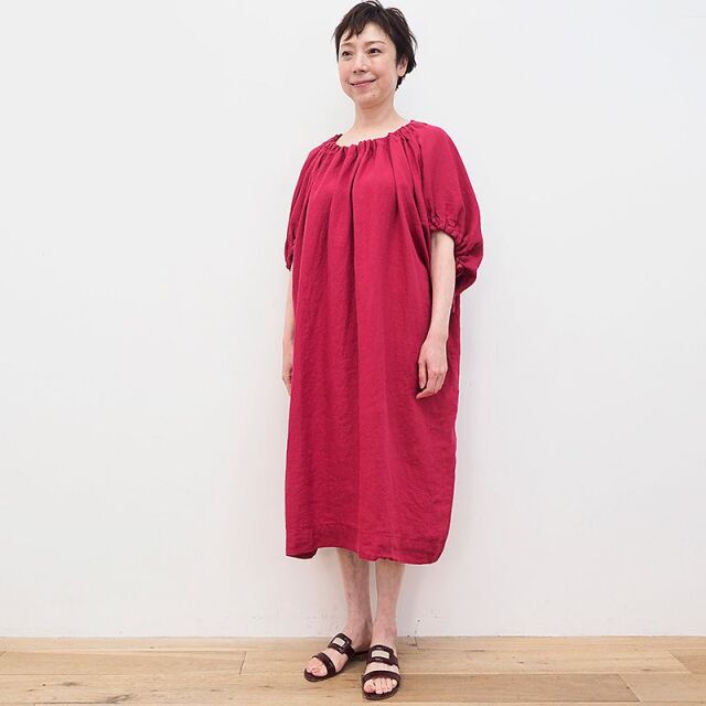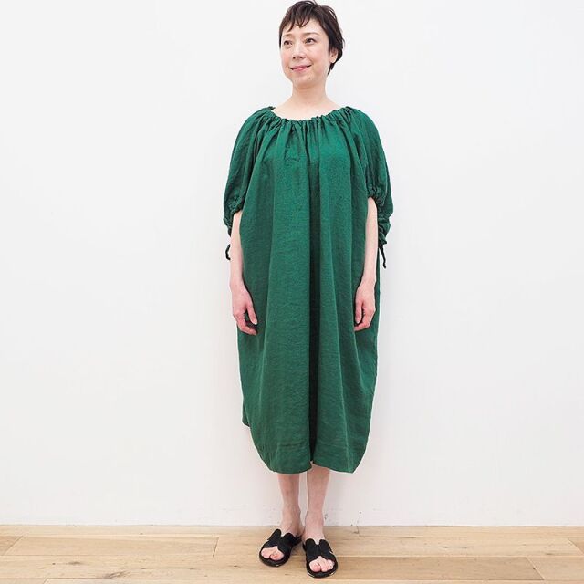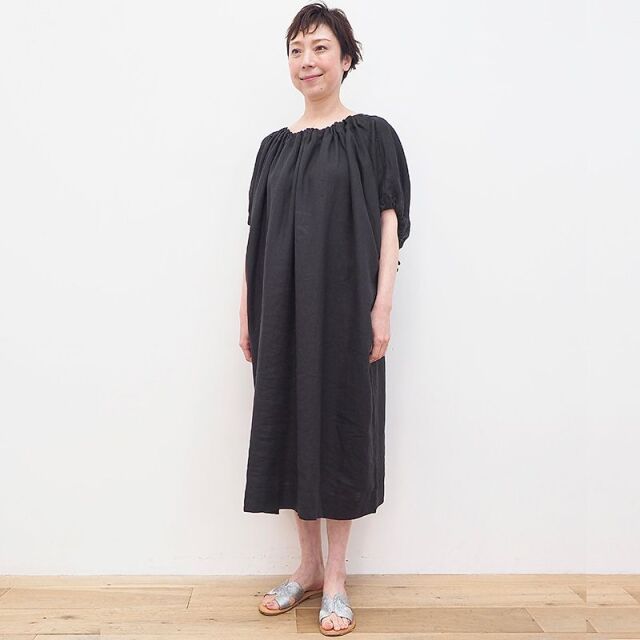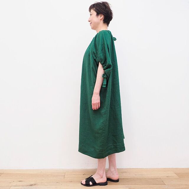 ネックの後ろでリボンを結び、お好みのシルエットに調節可能なワンピース。ネックや袖口が絞られることで全体に丸みが出る女性らしいデザインパンツを合せれば、オーバーサイズなチュニック風にもアレンジできます。生地には最高品質のポーランド製リネンを使用。着用・洗う毎に柔らかくなり、より肌触り良く滑らかな生地感になっていきます。