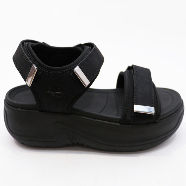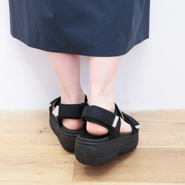 進化した快適さとスタイルを与える新ソール「EVOL SOLE」の厚底チャンキーソールモデル。軽量EVA素材とモダンなロッカー構造の厚底ソールで、歩きやすさとトレンド感を兼ね備えています。足首はしっかり固定しながら、つま先はワンストラップのシンプルなアッパー。レザー調PUとメタルパーツが融合したシックなデザインで、カジュアルからシックなコーディネートまで幅広いシーンで活躍してくれます。厚底でロング丈のボトムスと相性◎。脚長効果もあり、履くだけでスタイル抜群に見せてくれます。