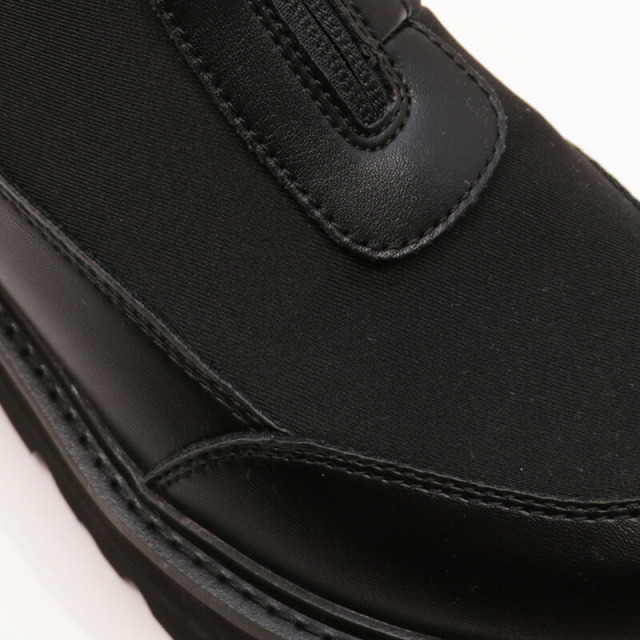 さらに、アッパー中央にはトレンドであるセンタージップを大胆に配置。デザインのアクセントとなるだけでなく、着脱のしやすさも向上させています。ジップを上げ下げするだけでスムーズに脱ぎ履きでき、忙しい日もストレスフリー。スリムなシルエットとセンタージップの組み合わせが、ラグジュアリーでモードな印象を高めています。